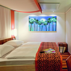 Alle Kabinen und Suiten sind mit einer Klima-Anlage, Teppichboden, Dusche/WC, Sat.-TV, interaktives TV, Informations- und Entertainmentsystem, Radio, Föhn, zusätzliche Kopfkissen und Direktwahltelefon ausgestattet. In allen Suiten befinden sich Duschen und/oder Badewannen. Die Handtücher in den Kabinen und Suiten werden täglich ausgetauscht und am Pool liegen gegen Pfand Pooltücher für die Gäste bereit. Im Wellnessbereich finden die Gäste Bademäntel vor. Die Meerblickkabinen verfügen teilweise über Bullaugen und bei einigen Meerblickkabinen kann die Sicht durch Rettungsboote oder Stahlwand behindert, bzw. verdeckt sein. Einige Kabinen sind mit Pullmann-Betten (Wand- und Deckenbetten, Reisebetten) ausgestattet. Die Premium-Suiten auf Deck 7 sind mit einem separaten Schlafbereich mit Doppelbett und einem separaten Wohnbereich mit 2 Sofabetten ausgestattet. Das private Sonnendeck ist mit Sitzmöbeln für den bequemen Aufenthalt versehen. Die Suiten können sowohl am Bug, dem vorderen Teil des Schiffes, als auch a