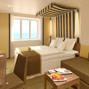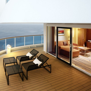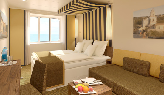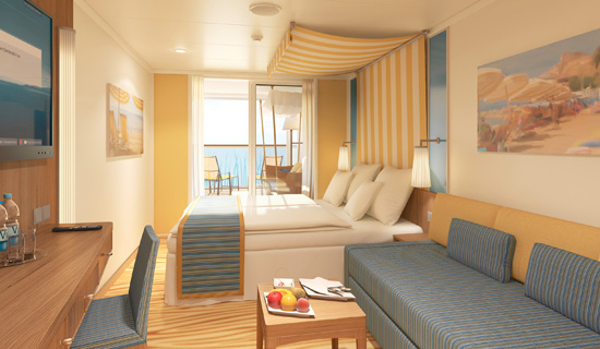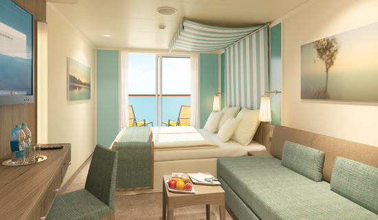 Suiten auf AIDAprima sind verfügbar als Junior-, Panorama-, Premium- und Deluxe-Suite mit 40-125 qm inklusive privatem Sonnendeck (12-82 qm).